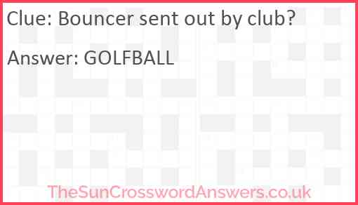 Bouncer sent out by club? is a crossword clue for which we have 1 possible answer and we have spotted 1 times in our database. This crossword clue was last seen on 10 March 2025 in The Sun Cryptic Crossword puzzle!