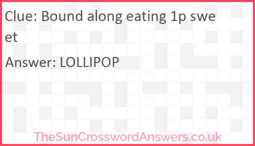 Bound along eating 1p sweet is a crossword clue for which we have 1 possible answer and we have spotted 1 times in our database. This crossword clue was last seen on 21 August 2021 in The Sun Cryptic Crossword puzzle!