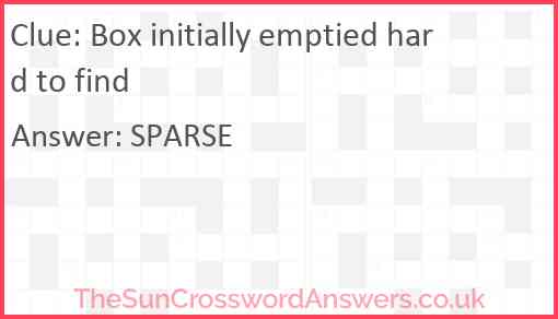 Box initially emptied hard to find is a crossword clue for which we have 1 possible answer and we have spotted 2 times in our database. This crossword clue was last seen on 30 July 2025 in The Sun Cryptic Crossword puzzle!