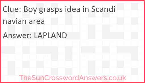 Boy grasps idea in Scandinavian area is a crossword clue for which we have 1 possible answer and we have spotted 2 times in our database. This crossword clue was last seen on 13 July 2023 in The Sun Cryptic Crossword puzzle!