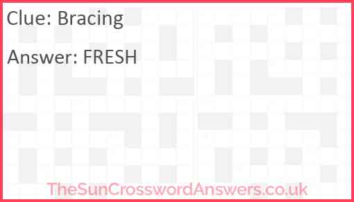Bracing is a crossword clue for which we have 1 possible answer and we have spotted 3 times in our database. This crossword clue was last seen on 06 February 2025 in The Sun Coffee Time Crossword puzzle!