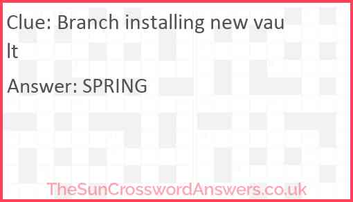 Branch installing new vault is a crossword clue for which we have 1 possible answer and we have spotted 3 times in our database. This crossword clue was last seen on 11 March 2023 in The Sun Cryptic Crossword puzzle!
