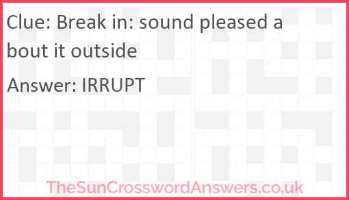 Break in: sound pleased about it outside is a crossword clue for which we have 1 possible answer and we have spotted 1 times in our database. This crossword clue was last seen on 21 February 2025 in The Sun Cryptic Crossword puzzle!
