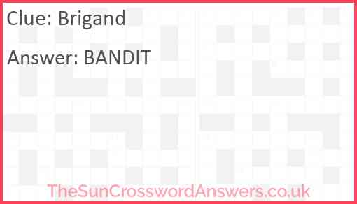 Brigand is a crossword clue for which we have 1 possible answer and we have spotted 9 times in our database. This crossword clue was last seen on 11 March 2025 in The Sun Coffee Time Crossword puzzle!
