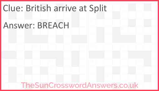 British arrive at Split is a crossword clue for which we have 1 possible answer and we have spotted 6 times in our database. This crossword clue was last seen on 09 October 2024 in The Sun Cryptic Crossword puzzle!