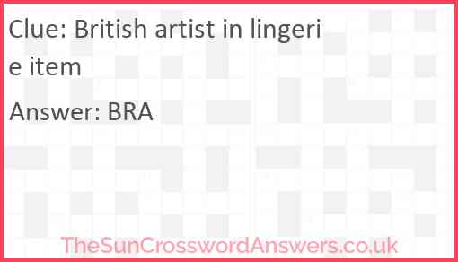 British artist in lingerie item is a crossword clue for which we have 1 possible answer and we have spotted 2 times in our database. This crossword clue was last seen on 05 April 2023 in The Sun Cryptic Crossword puzzle!