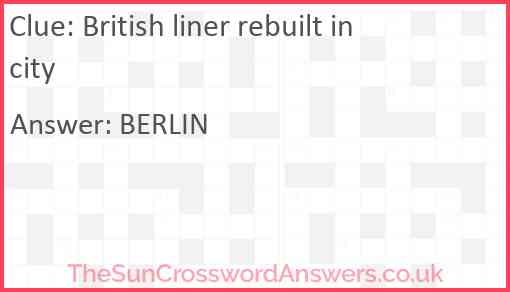 British liner rebuilt in city is a crossword clue for which we have 1 possible answer and we have spotted 1 times in our database. This crossword clue was last seen on 05 April 2024 in The Sun Cryptic Crossword puzzle!