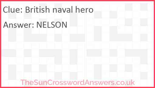 British naval hero is a crossword clue for which we have 1 possible answer and we have spotted 2 times in our database. This crossword clue was last seen on 15 February 2025 in The Sun Coffee Time Crossword puzzle!