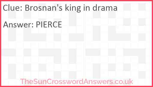 Brosnan's king in drama is a crossword clue for which we have 1 possible answer and we have spotted 1 times in our database. This crossword clue was last seen on 04 January 2024 in The Sun Cryptic Crossword puzzle!