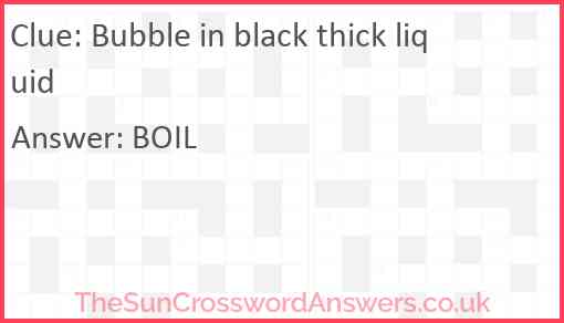 Bubble in black thick liquid is a crossword clue for which we have 1 possible answer and we have spotted 1 times in our database. This crossword clue was last seen on 13 October 2021 in The Sun Cryptic Crossword puzzle!
