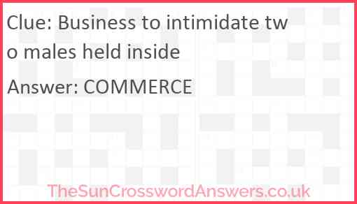 Business to intimidate two males held inside is a crossword clue for which we have 1 possible answer and we have spotted 2 times in our database. This crossword clue was last seen on 31 October 2022 in The Sun Cryptic Crossword puzzle!