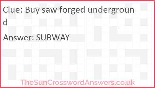 Buy saw forged underground is a crossword clue for which we have 1 possible answer and we have spotted 3 times in our database. This crossword clue was last seen on 02 November 2024 in The Sun Cryptic Crossword puzzle!