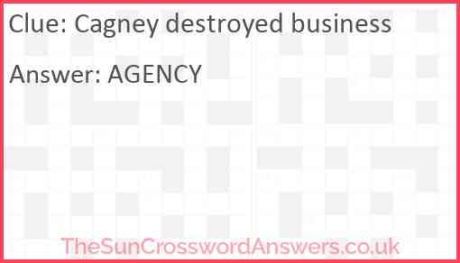 Cagney destroyed business is a crossword clue for which we have 1 possible answer and we have spotted 2 times in our database. This crossword clue was last seen on 10 April 2025 in The Sun Cryptic Crossword puzzle!