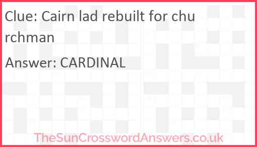 Cairn lad rebuilt for churchman is a crossword clue for which we have 1 possible answer and we have spotted 2 times in our database. This crossword clue was last seen on 20 August 2023 in The Sun Cryptic Crossword puzzle!