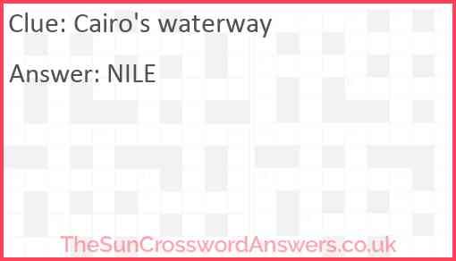 Cairo's waterway is a crossword clue for which we have 1 possible answer and we have spotted 3 times in our database. This crossword clue was last seen on 22 January 2022 in The Sun Coffee Time Crossword puzzle!