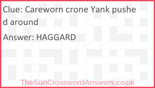 Careworn crone Yank pushed around is a crossword clue for which we have 1 possible answer and we have spotted 3 times in our database. This crossword clue was last seen on 12 December 2024 in The Sun Cryptic Crossword puzzle!