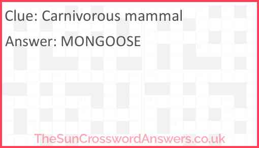 Carnivorous mammal is a crossword clue for which we have 1 possible answer and we have spotted 1 times in our database. This crossword clue was last seen on 01 December 2018 in The Sun Coffee Time Crossword puzzle!