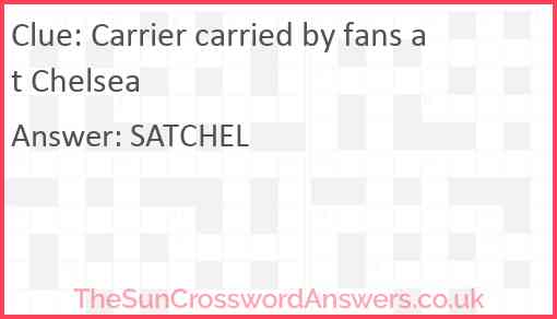 Carrier carried by fans at Chelsea is a crossword clue for which we have 1 possible answer and we have spotted 2 times in our database. This crossword clue was last seen on 20 April 2025 in The Sun Cryptic Crossword puzzle!
