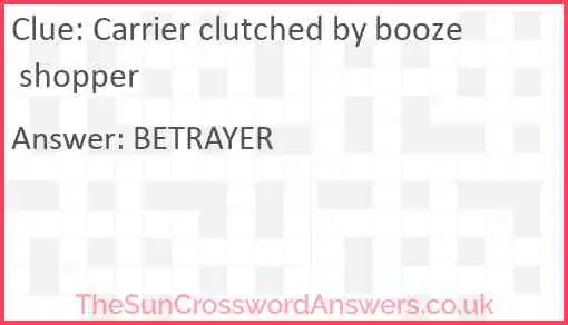 Carrier clutched by booze shopper is a crossword clue for which we have 1 possible answer and we have spotted 1 times in our database. This crossword clue was last seen on 27 December 2019 in The Sun Cryptic Crossword puzzle!