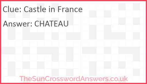 Castle in France is a crossword clue for which we have 1 possible answer and we have spotted 8 times in our database. This crossword clue was last seen on 25 November 2023 in The Sun Coffee Time Crossword puzzle!