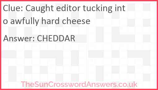 Caught editor tucking into awfully hard cheese is a crossword clue for which we have 1 possible answer and we have spotted 1 times in our database. This crossword clue was last seen on 16 June 2024 in The Sun Cryptic Crossword puzzle!