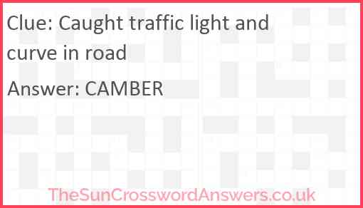 Caught traffic light and curve in road is a crossword clue for which we have 1 possible answer and we have spotted 3 times in our database. This crossword clue was last seen on 20 August 2023 in The Sun Cryptic Crossword puzzle!