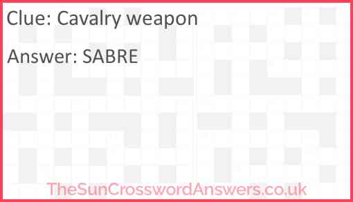 Cavalry weapon is a crossword clue for which we have 1 possible answer and we have spotted 8 times in our database. This crossword clue was last seen on 05 December 2024 in The Sun Coffee Time Crossword puzzle!