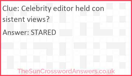 Celebrity editor held consistent views? is a crossword clue for which we have 1 possible answer and we have spotted 1 times in our database. This crossword clue was last seen on 21 May 2024 in The Sun Cryptic Crossword puzzle!