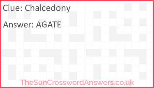 Chalcedony is a crossword clue for which we have 1 possible answer and we have spotted 16 times in our database. This crossword clue was last seen on 16 July 2025 in The Sun Coffee Time Crossword puzzle!