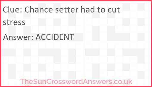 Chance setter had to cut stress is a crossword clue for which we have 1 possible answer and we have spotted 3 times in our database. This crossword clue was last seen on 07 December 2024 in The Sun Cryptic Crossword puzzle!