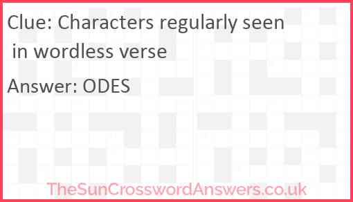 Characters regularly seen in wordless verse is a crossword clue for which we have 1 possible answer and we have spotted 1 times in our database. This crossword clue was last seen on 24 August 2019 in The Sun Cryptic Crossword puzzle!
