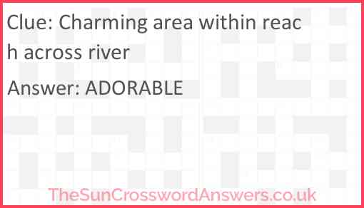 Charming area within reach across river is a crossword clue for which we have 1 possible answer and we have spotted 3 times in our database. This crossword clue was last seen on 26 June 2022 in The Sun Cryptic Crossword puzzle!