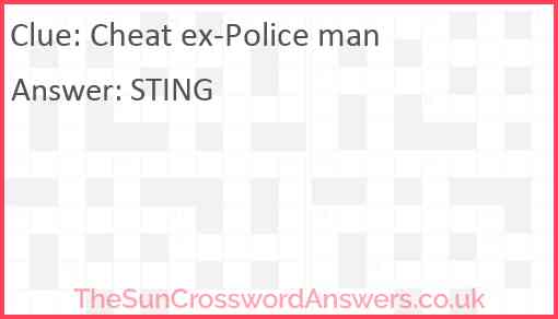 Cheat ex-Police man is a crossword clue for which we have 1 possible answer and we have spotted 3 times in our database. This crossword clue was last seen on 26 November 2023 in The Sun Cryptic Crossword puzzle!