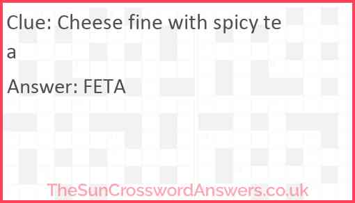 Cheese fine with spicy tea is a crossword clue for which we have 1 possible answer and we have spotted 3 times in our database. This crossword clue was last seen on 19 April 2023 in The Sun Cryptic Crossword puzzle!
