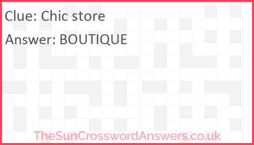 Chic store is a crossword clue for which we have 1 possible answer and we have spotted 1 times in our database. This crossword clue was last seen on 04 June 2021 in The Sun Coffee Time Crossword puzzle!