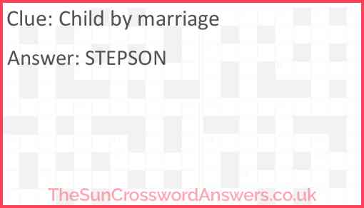 Child by marriage is a crossword clue for which we have 1 possible answer and we have spotted 6 times in our database. This crossword clue was last seen on 22 July 2025 in The Sun Coffee Time Crossword puzzle!