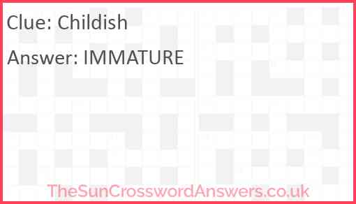 Childish is a crossword clue for which we have 1 possible answer and we have spotted 3 times in our database. This crossword clue was last seen on 28 February 2023 in The Sun Coffee Time Crossword puzzle!