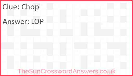 Chop is a crossword clue for which we have 1 possible answer and we have spotted 1 times in our database. This crossword clue was last seen on 04 September 2019 in The Sun Coffee Time Crossword puzzle!