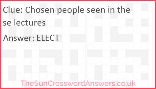 Chosen people seen in these lectures is a crossword clue for which we have 1 possible answer and we have spotted 2 times in our database. This crossword clue was last seen on 12 November 2023 in The Sun Cryptic Crossword puzzle!