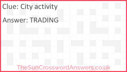 City activity is a crossword clue for which we have 1 possible answer and we have spotted 3 times in our database. This crossword clue was last seen on 23 March 2024 in The Sun Coffee Time Crossword puzzle!