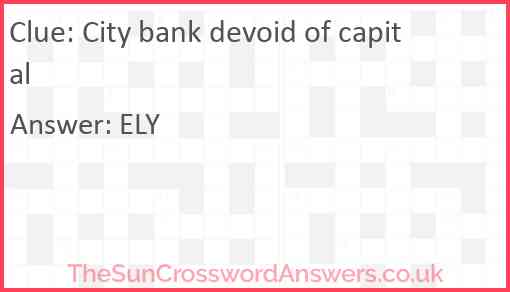 City bank devoid of capital is a crossword clue for which we have 1 possible answer and we have spotted 1 times in our database. This crossword clue was last seen on 13 April 2024 in The Sun Cryptic Crossword puzzle!