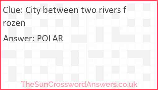 City between two rivers frozen is a crossword clue for which we have 1 possible answer and we have spotted 3 times in our database. This crossword clue was last seen on 04 December 2024 in The Sun Cryptic Crossword puzzle!