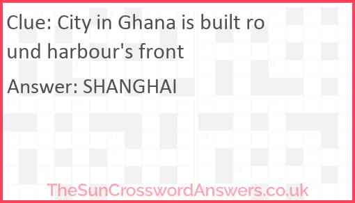City in Ghana is built round harbour's front is a crossword clue for which we have 1 possible answer and we have spotted 1 times in our database. This crossword clue was last seen on 29 January 2025 in The Sun Cryptic Crossword puzzle!