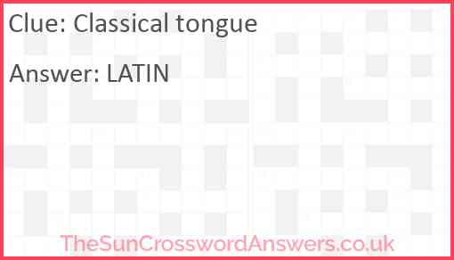 Classical tongue is a crossword clue for which we have 1 possible answer and we have spotted 3 times in our database. This crossword clue was last seen on 24 February 2025 in The Sun Coffee Time Crossword puzzle!