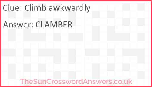 Climb awkwardly is a crossword clue for which we have 1 possible answer and we have spotted 2 times in our database. This crossword clue was last seen on 09 May 2021 in The Sun Coffee Time Crossword puzzle!