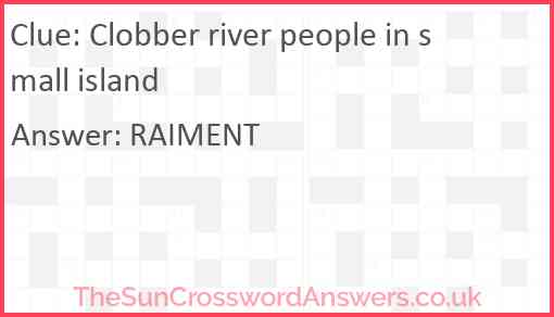 Clobber river people in small island is a crossword clue for which we have 1 possible answer and we have spotted 1 times in our database. This crossword clue was last seen on 11 December 2020 in The Sun Cryptic Crossword puzzle!