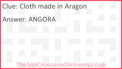 Cloth made in Aragon is a crossword clue for which we have 1 possible answer and we have spotted 2 times in our database. This crossword clue was last seen on 11 June 2025 in The Sun Cryptic Crossword puzzle!