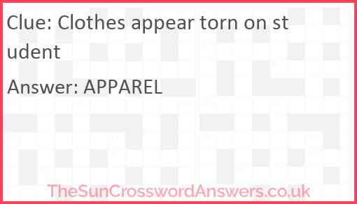Clothes appear torn on student is a crossword clue for which we have 1 possible answer and we have spotted 2 times in our database. This crossword clue was last seen on 28 November 2022 in The Sun Cryptic Crossword puzzle!