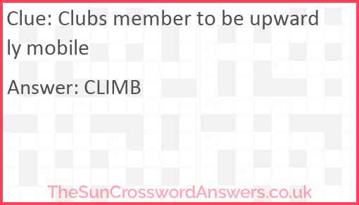 Clubs member to be upwardly mobile? is a crossword clue for which we have 1 possible answer and we have spotted 4 times in our database. This crossword clue was last seen on 12 March 2024 in The Sun Cryptic Crossword puzzle!