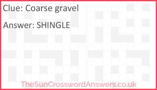 Coarse gravel is a crossword clue for which we have 1 possible answer and we have spotted 4 times in our database. This crossword clue was last seen on 21 November 2024 in The Sun Coffee Time Crossword puzzle!